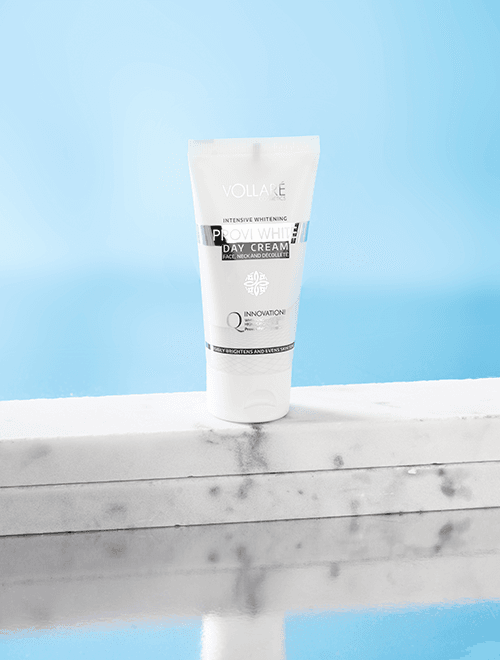 The intensely brightening day cream from the Provi White line by Vollare Cosmetics is enriched with a unique illuminating complex. The cosmetic reduces the appearance of discolourations and marks of different origin, helping to improve the skin tone. Visibly reduces the appearance of freckles. Smoothes the complexion, promises deep nourishment, effectively hydrates and defies premature signs of skin ageing caused by UVA and UVB radiation. The bioactive Prive White™ complex is a modern formula that combats pigmentation by reducing the melanin production. Effectively brightens and improves the skin tone.